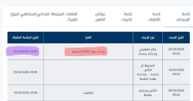 في تطور لافت، قام الزوج بإيداع المبلغ المحكوم به كاملاً بصندوق المحكمة قبل موعد الجلسة المقبلة، مما يُظهر التزامه بالحكم القضائي ويسرع إجراءات إنهاء العلاقة الزوجية. وبهذا الإيداع، ستقوم المحكمة بحجز الملف للمداولة والنطق بالحكم النهائي القاضي بالتطليق، مع تمكين الزوجة من سحب المبلغ المستحق. وتُعد هذه الخطوة نموذجاً لاحترام أحكام القضاء، مما يعزز فعالية المساطر القضائية ويضمن تنفيذ الحقوق المالية للأطراف في قضايا الأحوال الشخصية.