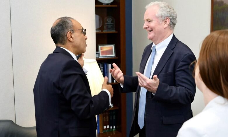 في إطار تحركات دبلوماسية مكثفة داخل العاصمة الأمريكية، ألتقى الدكتور بدر عبد العاطي وزير الخارجية والتعاون الدولي والمصريين بالخارج، بالسيناتور كريس فان هولن عضو لجنتي العلاقات الخارجية والإعتمادات بمجلس الشيوخ الأمريكي، وذلك خلال زيارته الحالية إلى واشنطن ولقاءاته مع قيادات الكونجرس.