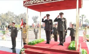 كما أناب زاهر قادة الجيوش الميدانية والمناطق العسكرية لوضع أكاليل الزهور على النصب التذكارى للجندى المجهول رافقهم خلال المراسم المحافظين ومديرى الأمن بالمحافظات نطاق المسئولية