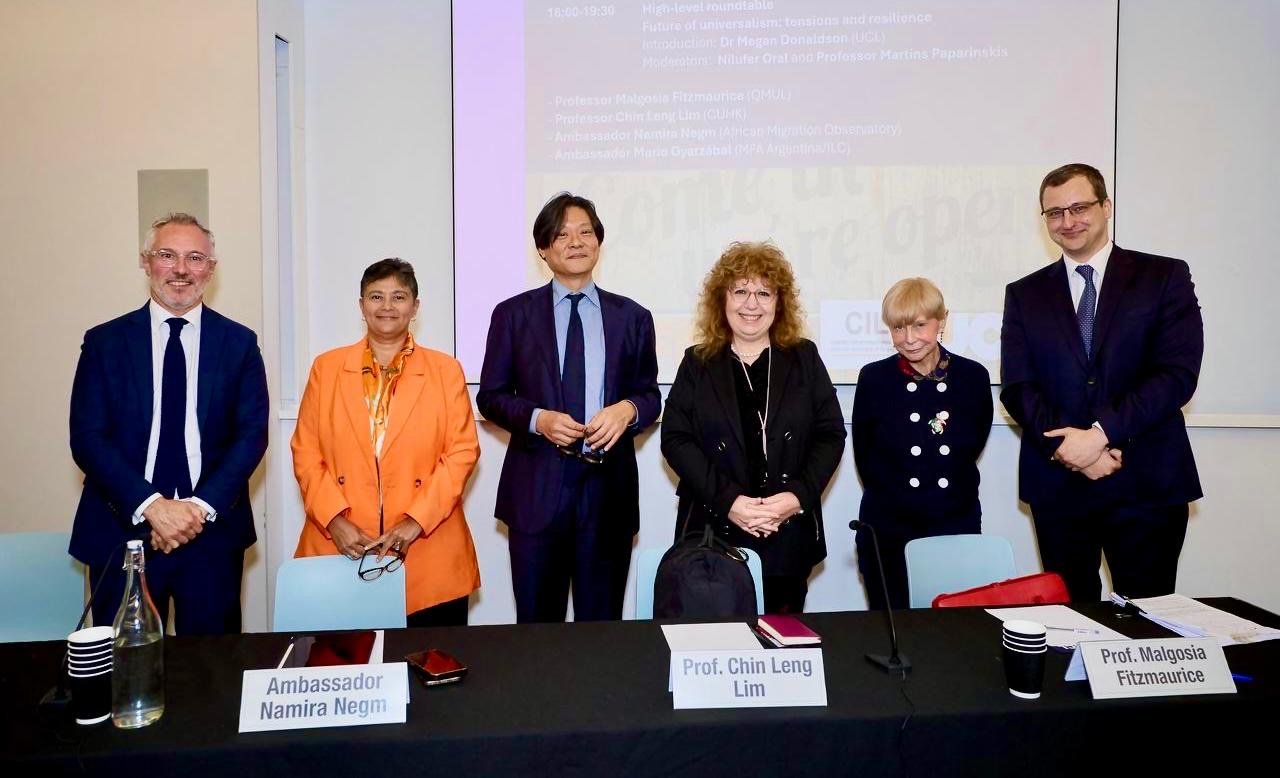 وقدمت الجلسة الدكتورة ميغان دونالدسون، أستاذة مساعدة في القانون الدولي العام في كلية القانون بجامعة كلية لندن، وأدارت الجلسة البروفيسورة نيلوفر أورال، أستاذة القانون الدولي في مركز القانون الدولي بالجامعة الوطنية في سنغافورة وعضو لجنة القانون الدولي التابعة للأمم المتحدة، والبروفيسور مارتينز بابارينسكس، أستاذ القانون الدولي في كلية القانون بجامعة كلية لندن وعضو لجنة القانون الدولي التابعة للأمم المتحدة.
