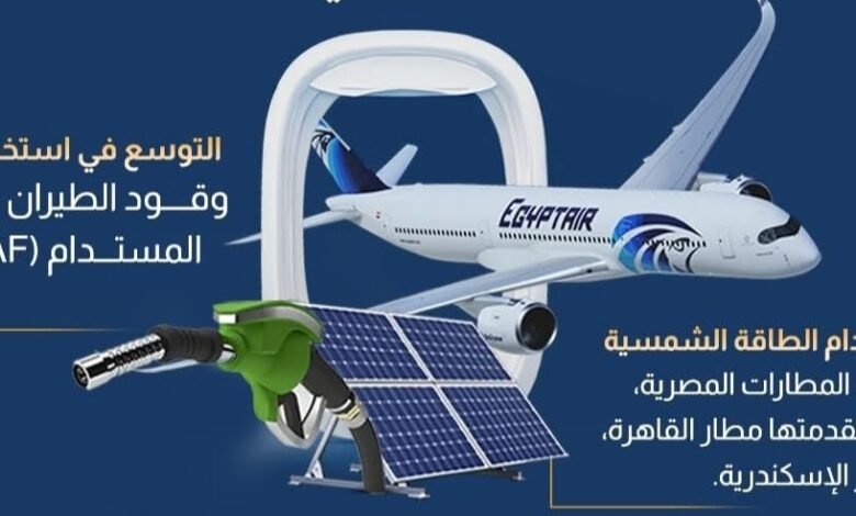 تم اتخاذ مجموعة من الإجراءات لتحقيق التوسع في استخدام وقود الطيران المستدام (SAF) واستخدام الطاقة الشمسية ببعض المطارات المصرية ،وذلك في إطار سعى الدولة المصرية لتعزيز ريادتها في مجال الطيران المدني إقليميًا ودوليًا ، وفي مقدمتها مطاري القاهرة والإسكندرية مع دراسة تعميم التجربة على باقي المطارات، بما يسهم في خفض الانبعاثات وتحسين كفاءة التشغيل ودعم جهود الدولة في تنويع مصادر الطاقة المتجددة والنظيفة.