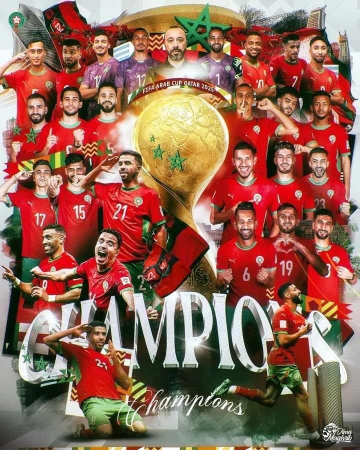 توج أسود الأطلس ببطولة كأس العرب) FIFA قطر 2025)، وذلك بعد الفوز على المنتخب الأردني فى المباراة الختامية للبطولة بثلاثة أهداف مقابل هدفين فى مباراة ماراثونية، ليتوج المنتخب المغربي للمرة الثانية فى تاريخه.