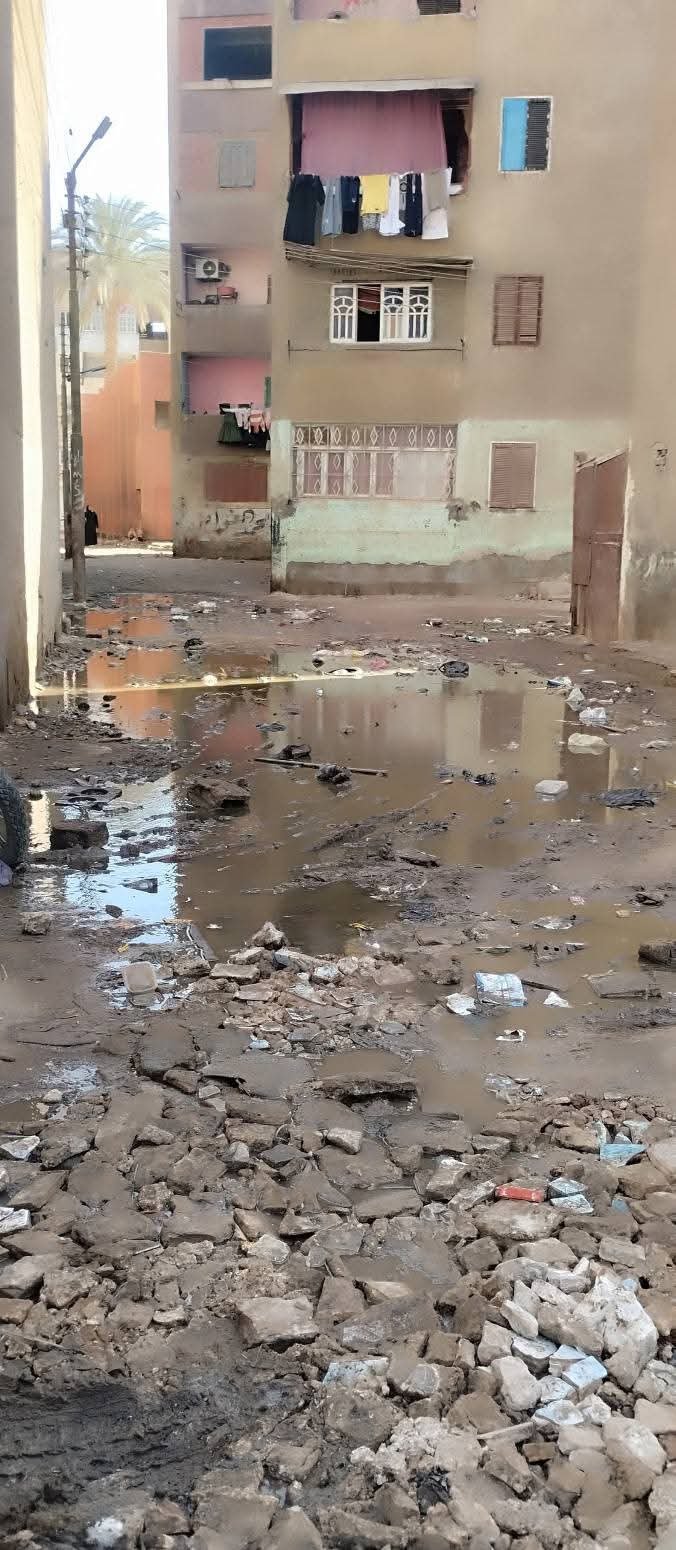 وأكد الأهالي أن الشوارع داخل المساكن أصبحت غير صالحة للسير الآدمي، بسبب تراكم المخلفات وانتشار مياه الصرف الصحي بشكل دائم، فضلًا عن غياب شبكة صرف صحي منتظمة وعدم توافر مياه صالحة للشرب، ما حول المنطقة إلى بؤرة معاناة يومية للسكان.