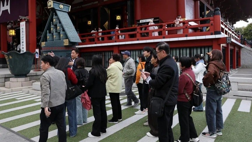 ويُعدّ المسافرون الصينيون الأكبر إنفاقاً في اليابان، إذ يمثلون خُمس إيرادات السياحة البالغة 8.1 تريليون ين (52.4 مليار دولار) في عام 2024.