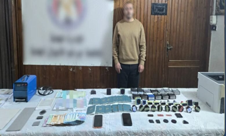 وعقب تقنين الإجراءات، داهمت القوات مقر نشاطه، وتمكنت من ضبطه وبحوزته عدد من الأختام والأكلاشيهات المقلدة المنسوبة لجهات مختلفة، إلى جانب جوازات سفر خاصة بعدد من المواطنين، فضلًا عن أجهزة ومعدات متطورة تُستخدم في تزوير المستندات.