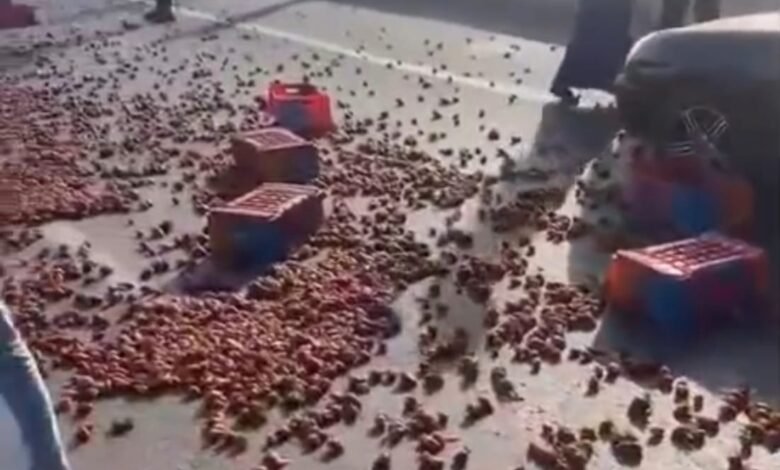 حادث مروري مفاجئ.. انقلاب سيارة محملة بالفراولة على طريق شبرا–بنها