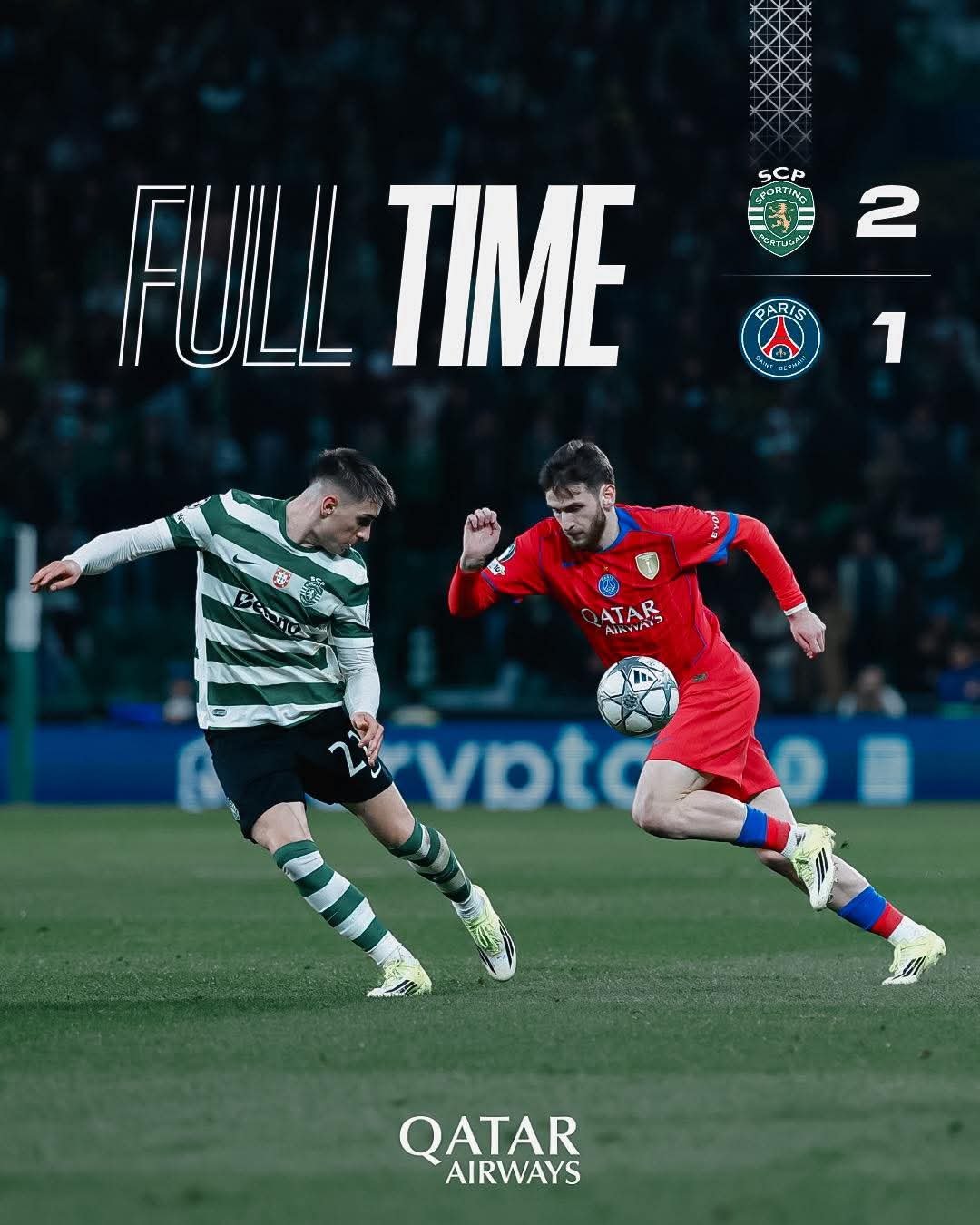 سقط باريس سان جيرمان حامل لقب دوري أبطال أوروبا الموسم الماضي، على ميدان مستضيفه سبورتنغ لشبونة بهدفين مقابل هدف، وذلك ضمن منافسات الجولة السابعة لدور المجموعات لدوري أبطال أوروبا، في المباراة التي جمعت بين الفريقين على ملعب جوزيه ألفالادي بالعاصمة البرتغالية لشبونة.