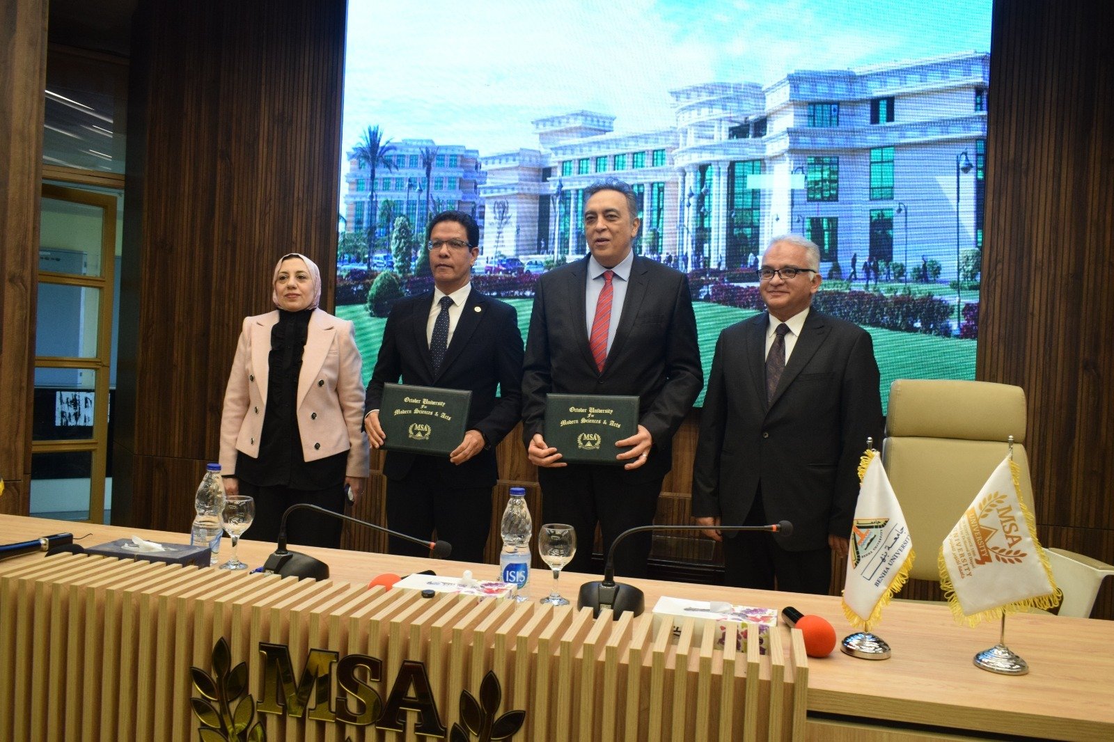 وجاء ذلك بحضور الدكتورة نوال الدجوى رئيس مجلس أمناء جامعة أكتوبر للعلوم الحديثة والآداب (MSA) ، والدكتورة جيهان عبد الهادي نائب رئيس جامعة بنها لشئون الدراسات العليا والبحوث، وعدد من عمداء وأعضاء هيئة التدريس بجامعة أكتوبر للعلوم الحديثة والآداب.