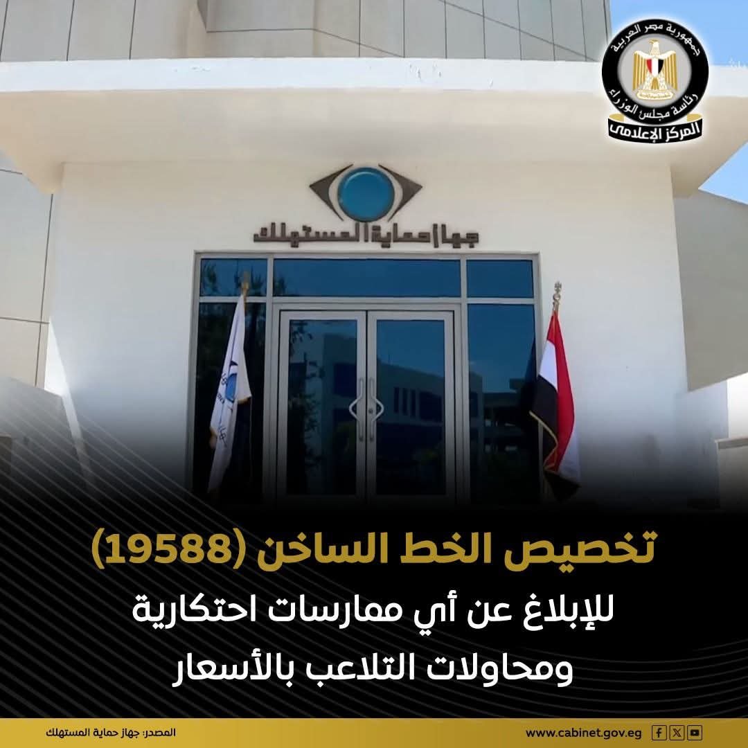 ودعا الجهاز المواطنين إلى سرعة الإبلاغ عن أي مخالفات أو محاولات لاستغلال الظروف الراهنة، سواء برفع الأسعار بشكل غير مبرر أو احتكار السلع، وذلك من خلال الخط الساخن (19588) أو عبر تطبيق “حماية المستهلك” على الهواتف الذكية.
