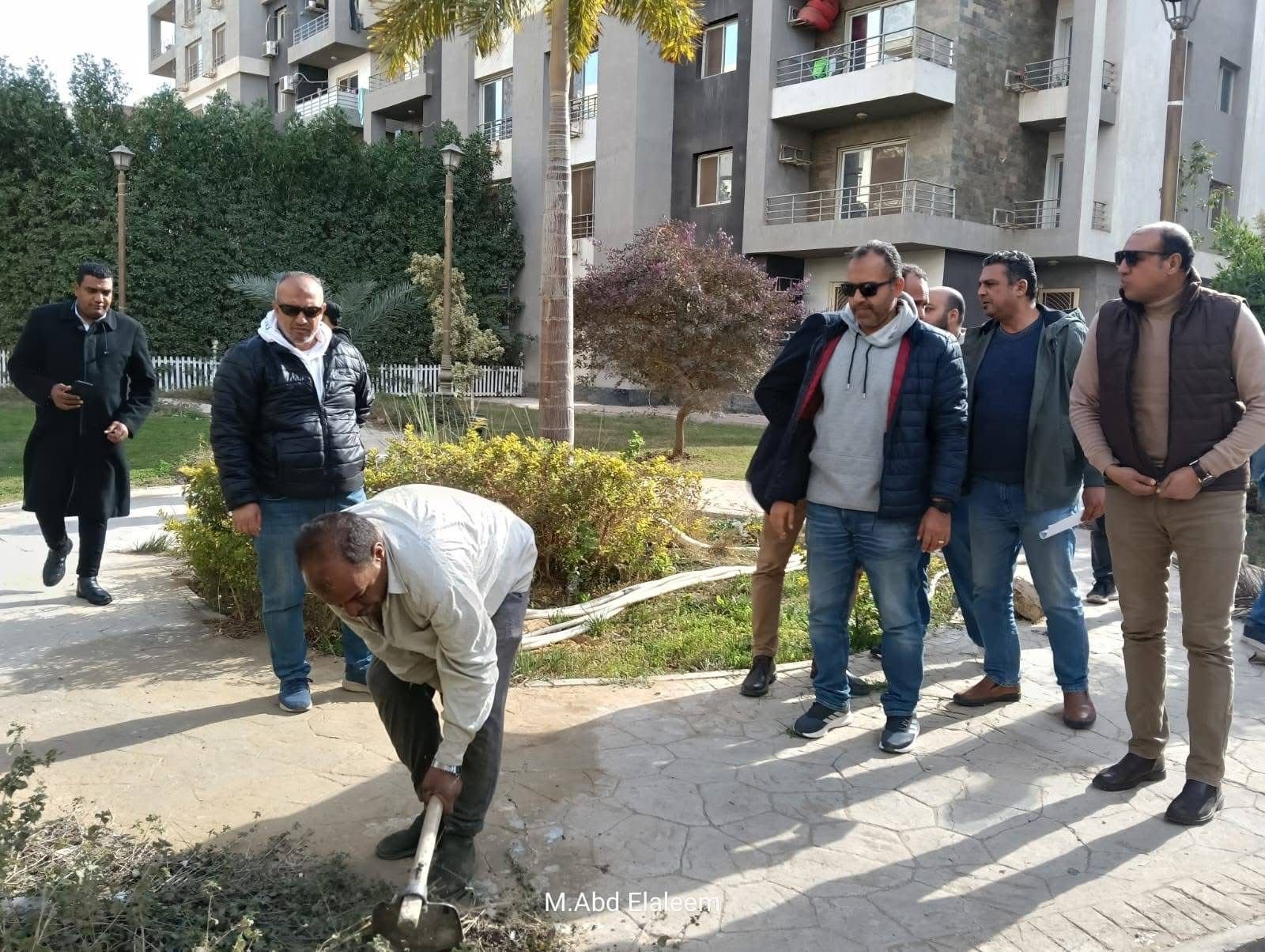 وفيما يخص المسطحات الخضراء، تابع سيادته أعمال الصيانة والزراعة، ووجه بالالتزام بخطط الري المنتظم، والتقليم الدوري للأشجار ، وتكثيف أعمال التهذيب، بما يحافظ على الطابع الجمالي الذي تتميز به مدينة العبور، ويعزز من جودة البيئة السكنية داخل المشروع.
