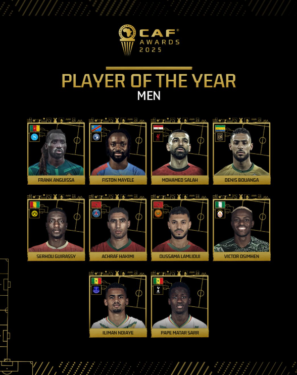 تشمل القائمة أيضًا نجومًا كبارًا مثل محمد صلاح من ليفربول وهداف المنتخب الغيني سيرهو غيراسي من بروسيا دورتموند، مما يعكس تنوع المواهب الإفريقية ويجعل المنافسة مشوقة لعشاق كرة القدم.
