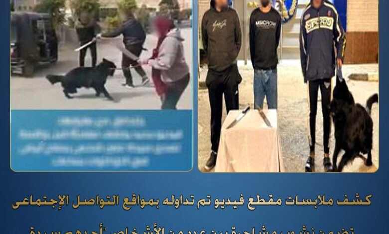 تمكنت الأجهزة الأمنية بمديرية أمن المنوفية، من كشف ملابسات مقطع فيديو تم تداوله على مواقع التواصل الاجتماعي، يظهر فيه نشوب مشاجرة بين عدد من الأشخاص، أحدهم سيدة ممسكة بكلب، وبحوزتهم أسلحة بيضاء.
