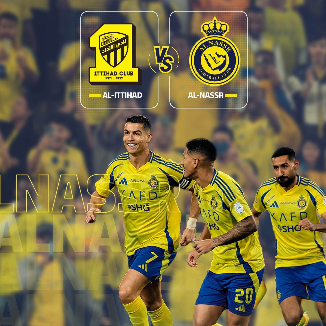 النصر vs الإتحاد في تمام الساعة 19:30 مساءًا بتوقيت القاهرة على قناة ثمانية 1.