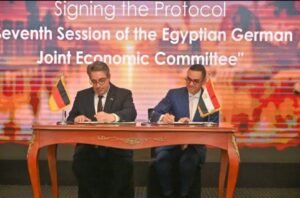 وفي ختام الإفتتاح وقع كل من المهندس حسن الخطيب وزير الاستثمار والتجارة الخارجية، والسيد/ ستيفان روينهوف وزير الدولة البرلماني بوزارة الشؤون الاقتصادية والطاقة بجمهورية ألمانيا الاتحادية محضر الاجتماع السابع للجنة الاقتصادية المصرية الألمانية المشتركة.