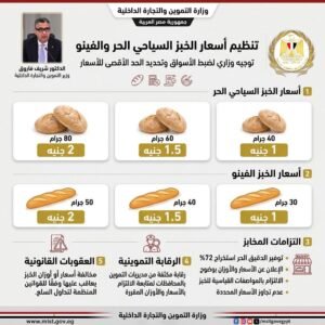 أصدر الدكتور شريف فاروق وزير التموين والتجارة الداخلية التوجيه الوزاري رقم (5) لسنة 2026 بشأن تنظيم إنتاج وتداول الخبز السياحي الحر والخبز الفينو وتحديد الحد الأقصى لأسعارهما، وذلك في إطار حرص الوزارة على ضبط الأسواق وتيسير حصول المواطنين على الخبز بأسعار مناسبة وعادلة.