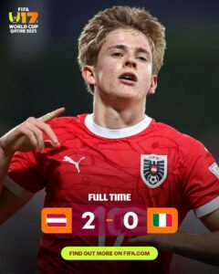 تأهل المنتخب البرتغالي ونظيره النمساوي للمباراة النهائية لبطولة كأس العالم تحت 17 عاما، والمُقامة بالعاصمة القطرية الدوحة.