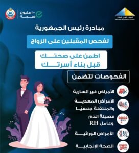 كما شدد أيضاً على أهمية الاستفادة من المبادرة الرئاسية للمقبلين على الزوج وعدم الإغفال عن هذه الأهمية ، ذلك لضمان صحة أفضل للأسرة المستقبلية، حيث تساهم في الكشف المبكر عن الأمراض المعدية والوراثية، ذلك لتحسين جودة الحياة وبناء أسرة سليمة وصحية .