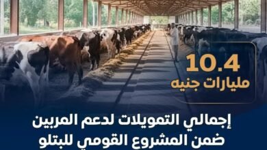 أعلنت وزارة الزراعة واستصلاح الأراضي، أن إجمالي ما تم تمويله للمشروع القومي للبتلو حتى أبريل الجاري بلغ حوالي…
